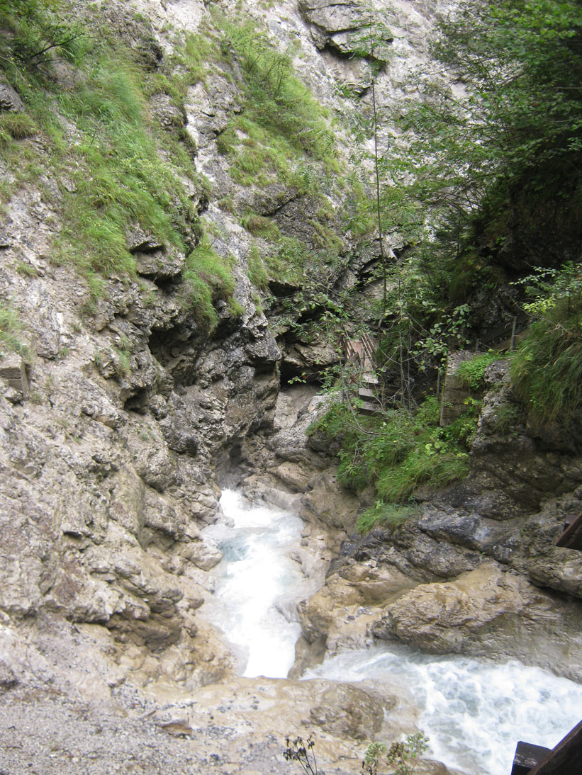 Heute machte ich es genauso, ich schrieb erst am Vormittag, ohne Hatz und Stress, was mir sehr gut tut. Es regnete nicht, aber die Temperaturen sind noch sehr niedrig. Meine neuen Handschuhe vom Discounter waren jetzt sehr hilfreich, um aus dem Tag noch etwas zu machen. Ich wollte wenigstens noch ein bisschen wandern. Die Höhen lagen alle unter Wolkendecken, und als diese kurz aufriss, offenbarte sich der Schnee, so dass eine Gipfeltour heute nicht möglich war. Sicher war es ohnehin bereits zu spät. Also entschloss ich mich, die kleine Wanderung durch die Rosengartenschlucht zu unternehmen. Ich habe sie so eingeschätzt, dass ich mich nicht vorbereitet habe. Ich hatte weder Wasser dabei, noch eine meiner Wanderkarten. Noch hatte ich mich umgezogen, bin mit der einzigen, sauberen Hose aufgebrochen. So viel zu Selbstüberschätzung. Zum Glück stellte sich die Wanderung wirklich nur als recht mäßig heraus, auch wenn die Szenerie mitunter spektakulär war. Das lag an den Regenfällen und der heute einsetzenden Schneeschmelze in den Höhen, denn der Bach, der durch die Schlucht floss, glich eher einem reißenden Fluss. Die Wasserfälle stürzten ins Tal, so dass es eine wahre Freude war. Immer wieder sah ich aus der Ferne den Tschirgant. Gipfel, ob erfolgreich erklommen oder nicht, haben etwas Anziehendes. Es ist, als ob sie rufen. „Hier oben warst du.“ Oder, wie in diesem Fall: „Ich bin noch da. Willst du es nicht noch einmal probieren?“