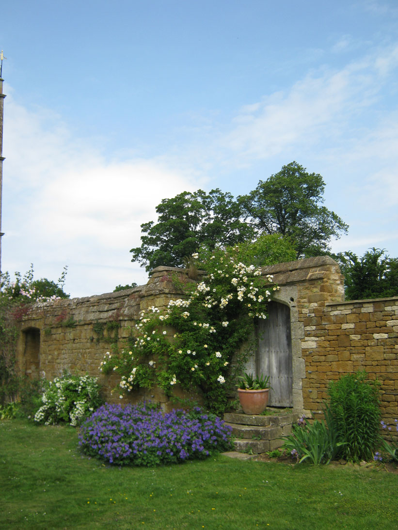 Hidcote ist liebevoll in einzelne „Räume“ eingeteilt, die man entdecken kann. So wanderte ich durch die Reihen von verschiedenen Gärten, manchmal förmlich, manchmal wild, manchmal parkähnlich. Ich verlor mich in den Düften der Natur, bewunderte die Farbenpracht. Ich erinnerte mich, wir waren vor vielen Jahren einmal Anfang April hier gewesen. Damals blühte nicht viel, doch trotzdem hatte der Garten bereits die göttliche Ausstrahlung des kreativen Geistes, der ihn geschaffen hatte. Wunderbar also, ihn jetzt in voller Blüte zu sehen. Ich fand den Jasmin wieder, der damals im Gewächshaus geblüht hatte und seinen betörend süßen Duft verströmt hatte. Heute war er bereits verblüht, machte Platz für andere Düfte, die ihm in nichts nachstanden. Ich bin kein Botaniker, nicht einmal ein erfolgreicher Gärtner. Dennoch genieße ich es jedes Mal, die prachtvollen Gestaltungen zu sehen. Die einzelnen „Räume“ sind oft recht genau gegeneinander abgetrennt, genauso oft aber fließen sie ineinander über. Was mir besonders ins Auge fiel, war der „Rock Garden“, ich weiß nicht genau, ob die Übersetzung als „Felsengarten“ richtig ist. Aus dem warmen Sandstein hoben sich die Farben prächtig ab.