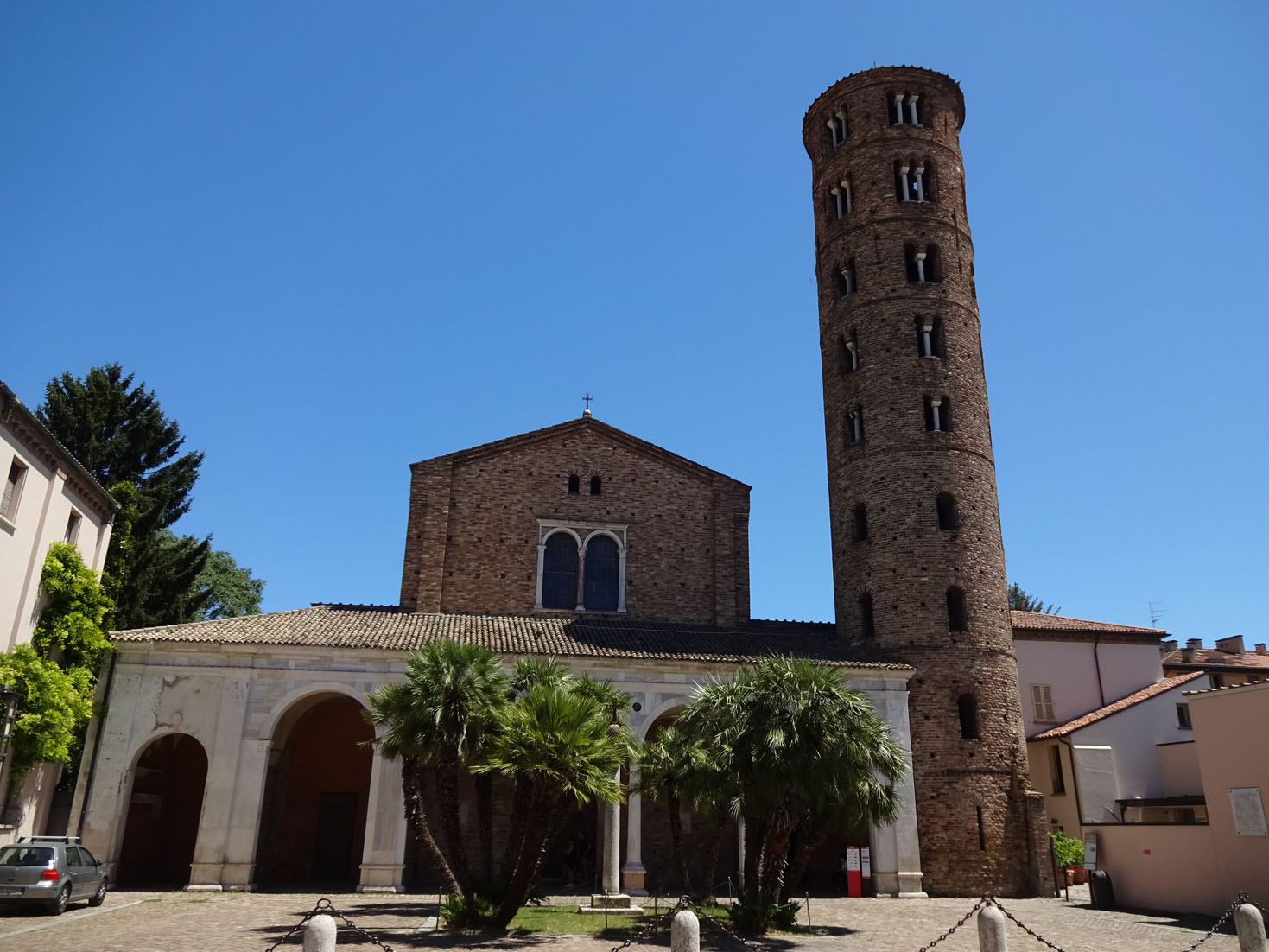 Manchmal sind es ja die Umwege, die einen dann auf Außergewöhnliches stoßen lassen. Nun, ich weiß das natürlich (noch) nicht. Jedenfalls kam ich an einer wunderbaren Kirche vorbei, Santa Appolinare. Eine der großen Kirchen in der Gegend um Ravenna. Und das will etwas heißen. Ich habe sie noch nicht besucht, mache das aber morgen, wenn ich aus Ravenna fortfahre. Das habe ich jedenfalls vor.