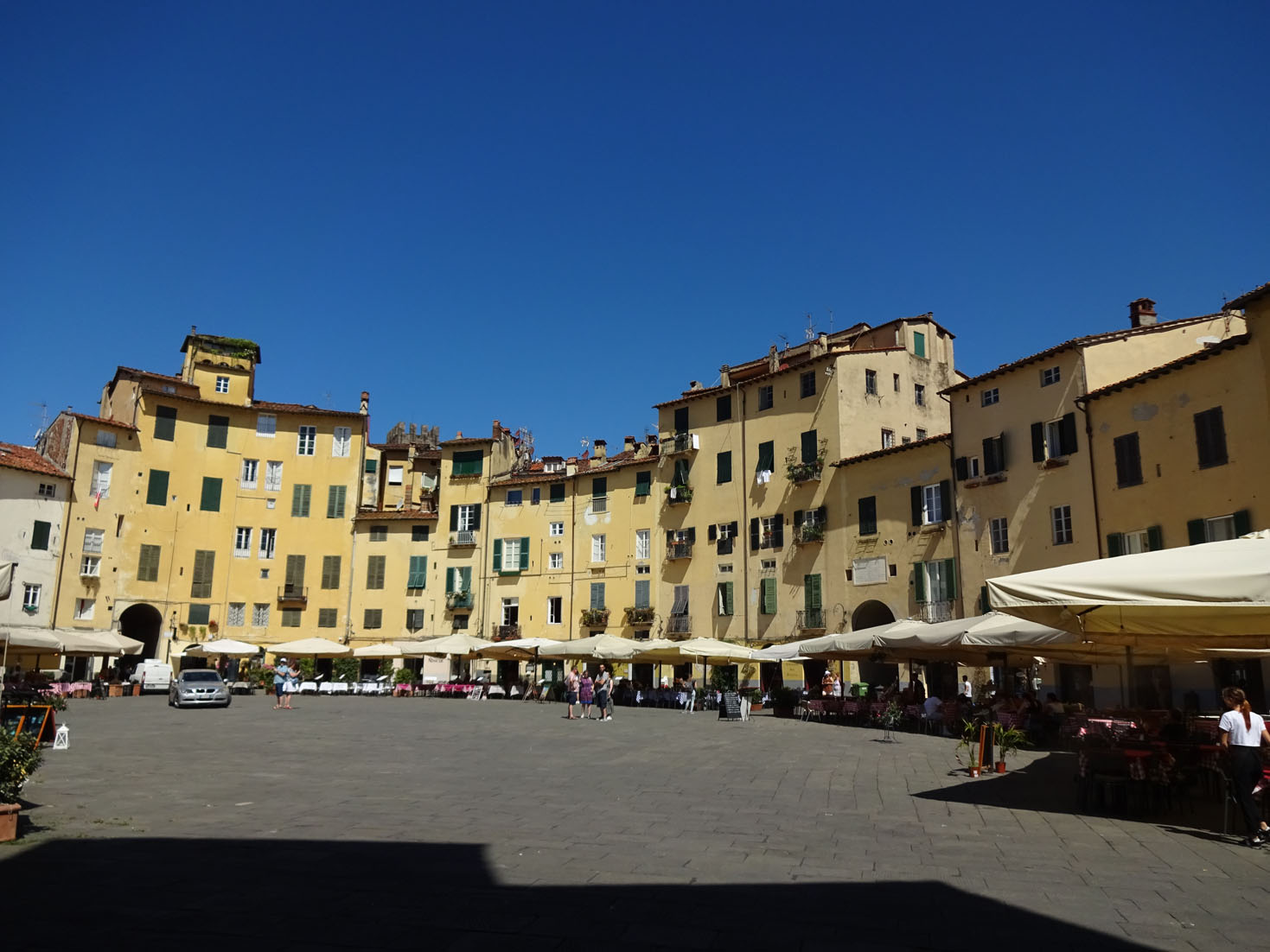 Im Grunde sind es diese Städte hier selbst. Alles riecht nach Geschichte, der Staub hier könnte nicht nur mittelalterlich sein, sondern auch antik. Und man kann genau hinsehen, dann fällt es auch auf. Lucca war schon Römerstadt, mit allem drum und dran. Die Zeugen dieser Römerstadt sind noch da, 2000 Jahre Geschichte, verschmolzen mit einer jüngeren Vergangenheit und auch mit der Gegenwart.