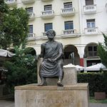 Aber ich drifte ab. Ich lief bis zum Platz des Achilles, wo eine Bronzestatue vom großem Philosophen und Lehrer Alexanders des Großen steht. Wie bei Heiligenstatuen in Rom sind auch seine Zehen völlig blank gerieben, wahrscheinlich versuchen Touristen, etwas von seiner Weisheit zu erlangen. Immer kräftig reiben, das macht zwar nicht klüger, aber es glänzt so schön.