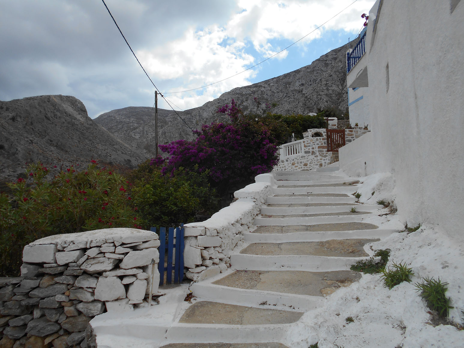 In Aegiali hielt ich mich nicht lange auf, sondern suchte nach einem Weg zum Geisterdorf, das ich vor einigen Tagen auf der Wanderung von Tholaria nach Aegiali gesehen, aber nicht besucht hatte. Eine breite Treppe führte mich dorthin.