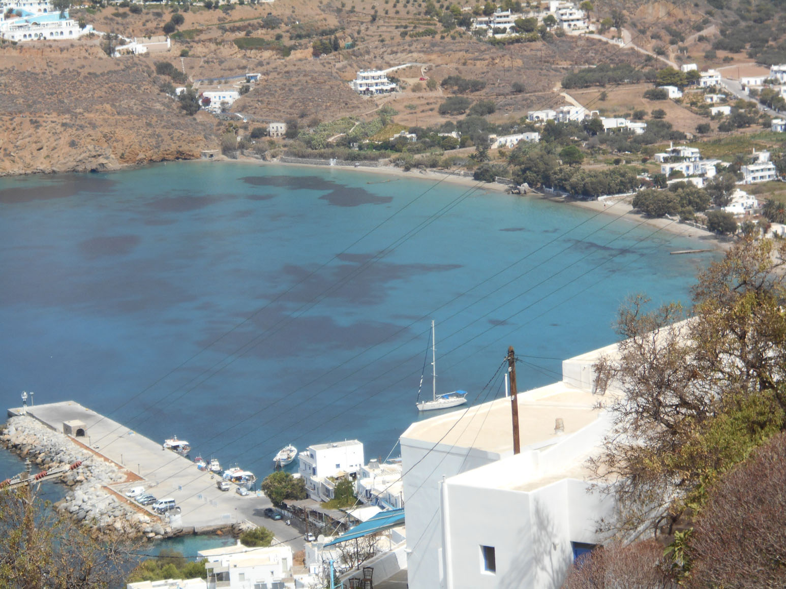 Schön ist auch, dass sich Aegiali an einen Berg schmiegt. Hier folgte ich dem Pfad nach oben, hatte bald wundervolle Aussichten auf den Strand und das kleine Dorf, auch auf die anderen Orte in der Nähe, Tholaria und das alte Aegiali in den Bergen. Der Ort um den Hafen herum ist sicher neu, die Leute früher wohnten aufgrund der Bedrohung durch Piraten nie am Meer selbst.